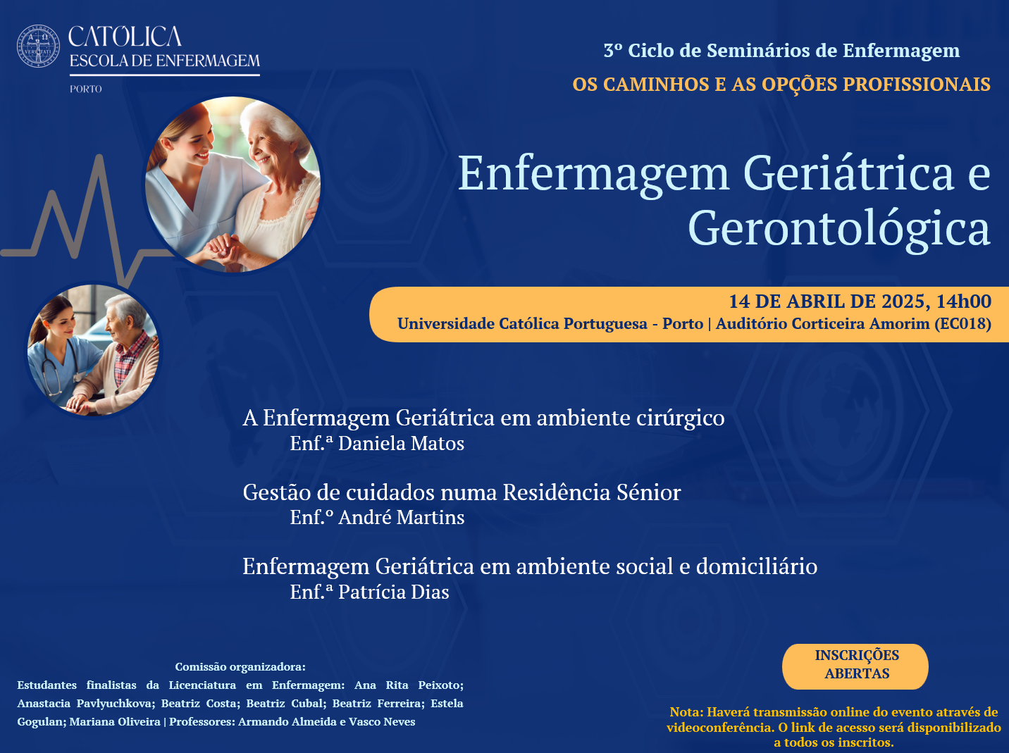 O 3º Ciclo de Seminários de Enfermagem, intitulado “Os Caminhos e as Opções Profissionais”, propõe uma reflexão aprofundada sobre as diversas trajetórias e desafios inerentes à prática profissional em variados contextos. Ao integrar a experiência prática, o ciclo promove a troca de saberes e estimula a inovação na prestação de cuidados.